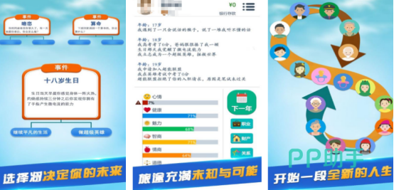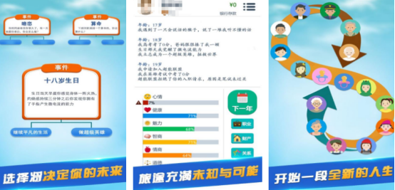 以文字叙述的形式进行展现,能让玩家感受到他人的人生发展历程,游戏为玩家提供了多样化的人生选择,所有的选择权都掌握在自己的手中,从出生再到生老病死都可以进行自己规划。比如可以选择出生的家庭条件以及父母的事业等等,您在这款游戏中,就能感受他人的人生方式以及不同的人生模拟。