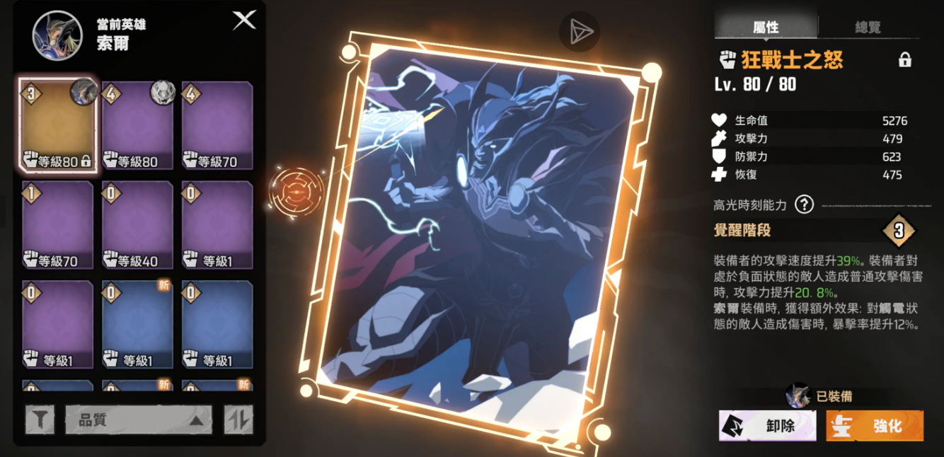 另一关键搭配为勃勃野心,此天赋可有效提升攻击速度并优化普通攻击循环流畅性,帮助雷神在短时间内完成多次打击,与雷神之力形成高效联动,实现高频次输出压制。在对抗防御较弱的目标时,该组合能发挥出极强的压制力。