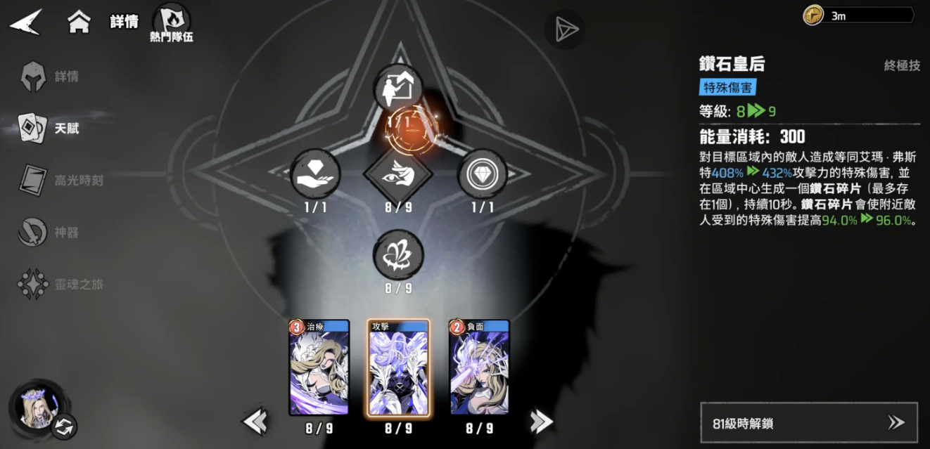 在常见的“雷神+美队+白皇后”组合中,白皇后的终极技能可强化雷神的特殊伤害类型并削弱敌方防御属性,从而大幅提升雷神天赋的实际收益。同时,美队提供的攻防增益效果也能增强雷神的持续作战能力,使其能够在前排稳定输出,充分发挥叠加型天赋的优势。