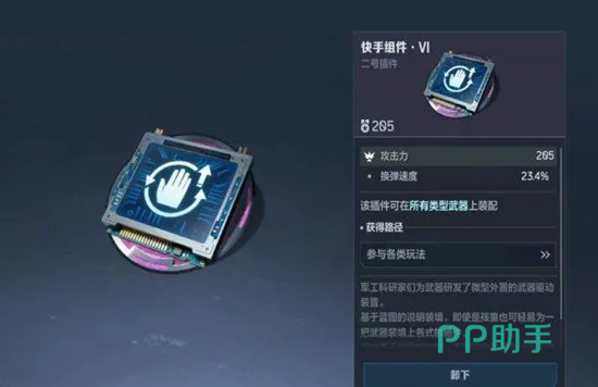 快手组件则侧重优化武器持续作战能力,主要作用为缩短换弹时间。在高强度PVP对局中,0.3秒级的换弹提速往往决定先手权归属,有效降低因弹药耗尽导致的战术空档,提升连贯压制能力与生存容错率。