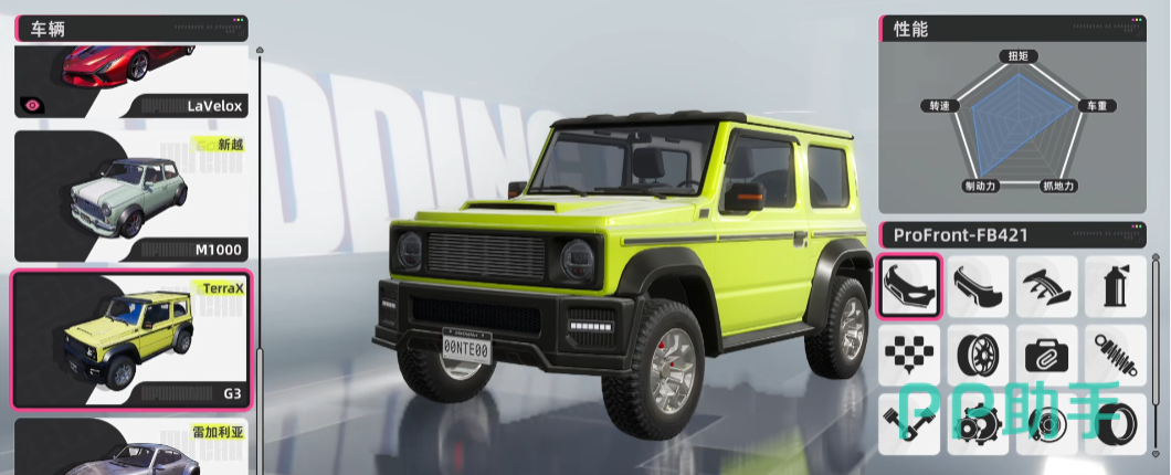 竞速车辆仅在限时活动赛事期间开放获取,配备专属涂装及特殊配件加成,性能表现强劲。这类车辆多用于野外高速行驶,车身附带动态流光特效,视觉冲击力强,极具观赏价值;至于展示型用车,则只会在商城中上架出现;