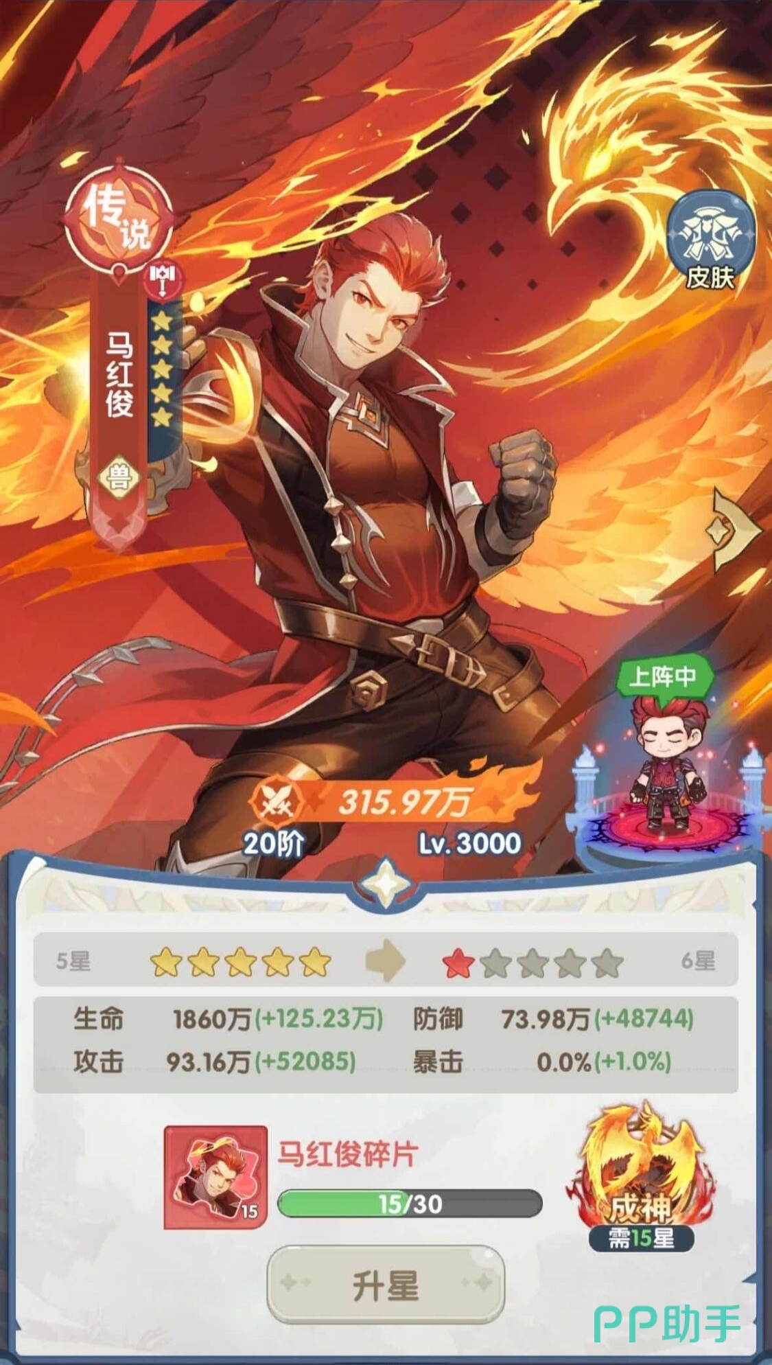 成神之后,马红俊将获得终极神技“焚天烬世”。在释放主动技能前,有极高概率额外触发一次针对敌方全体的特殊伤害,相当于为“凤凰啸天击”附加了一次前置爆发。这一机制大幅提升了技能连招的整体爆发力,在实战中往往能瞬间削减敌方全员血量,形成压倒性优势,使其成为战场上最令人忌惮的群伤核心。