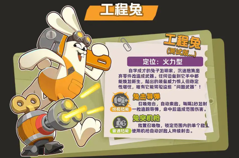 角色技能系统强调差异化定位:工程兔为持续火力担当,可切换机枪扫射与制导导弹,后者具备自动追踪能力且爆炸范围覆盖更广;嘎嘎鸭专精高机动战术,滑铲动作可衔接战术护目镜激活——进入狂暴模式后,武器射速提升并启用智能锁敌,自动聚焦最近目标;战斗鸡定位前排突击手,“爆裂冲拳”实现直线位移打击,“拳力风暴”则触发多段连续伤害。四名角色能力互补,无强度碾压关系,策略选择空间充分。