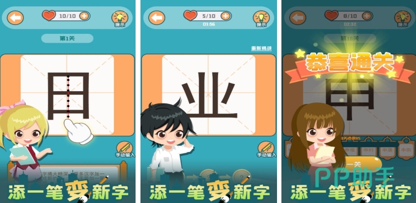 在添一笔变新字游戏中,玩家只需在给定的汉字上添加一笔,使之变成全新的汉字即可开启挑战,这种极简的操作模式,无论男女老少,无论是否有深厚的文字功底,都能在短短几分钟内迅速掌握玩法,每成功添加一笔变出一个新字,都是一次对汉字知识宝库的深入挖掘,面对一个看似简单的基础汉字,思考从何处添笔、能变出哪些字,需要玩家调动联想、推理、记忆等多种思维能力。