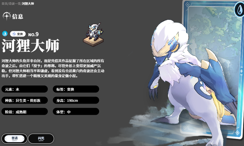 第三位推荐水属性奇波河狸大师。该奇波以高频持续输出见长:普攻可触发3次连续水属性攻击,每次造成118%伤害;当进入爆发状态后,可额外释放三次299%水伤(约等于300%)的终结连段。此过程显著降低目标物理防御与魔法防御。其专属技能“浪袭”可向前方地面投射波浪,路径上所有敌人均承受372%水属性伤害。