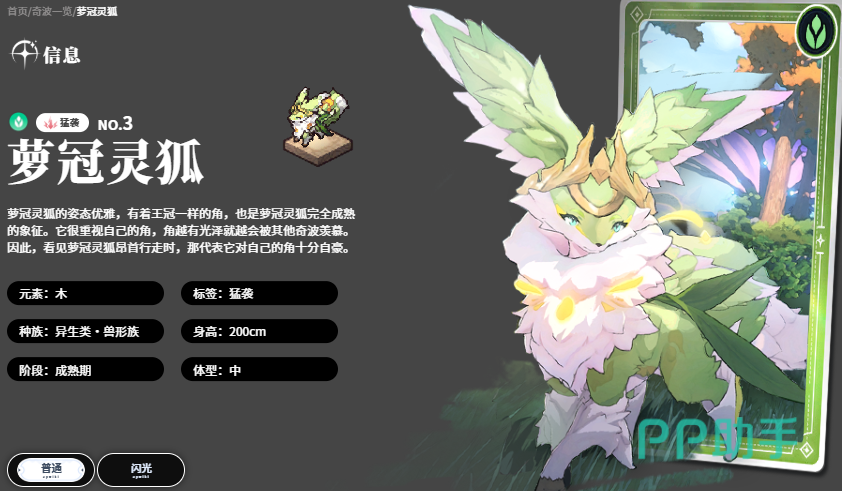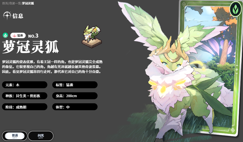 首推奇波为萝冠灵狐,主属性为木。该奇波拥有高能效木系能量转化率,其主动技能可对周围敌人造成165%基础伤害,并施加一枚木属性印记。印记存在期间,队伍中任意角色攻击带有印记的目标时,暴击率提升,且暴击伤害达到峰值;同时,目标木属性抗性降低,持续时间为8秒,为木系主力阵容创造高强度集中输出窗口。