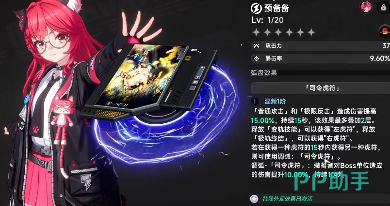 弧盘(专属武器)名为“预备备”,具备独立主动技能(R技)。需先通过E技能获取左印记,再以大招Q技获取右印记,集齐双印记后方可激活R技——召唤司令虎符,显著提升对Boss类目标的伤害转化率。若未获取该专武,可选用大月卡武器替代,强度约为专武的80%;次选方案为大世界Boss掉落武器“鲸之歌”,同样可达约80%专武效能。