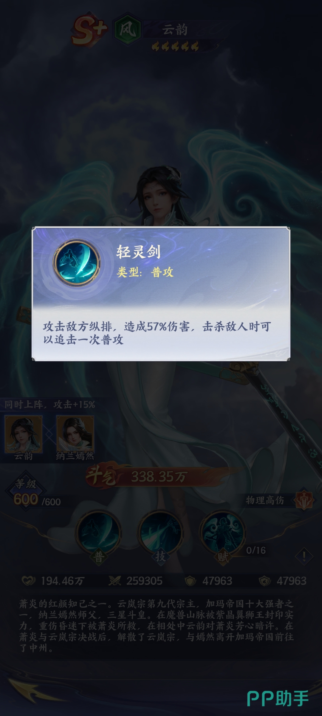 在《斗破苍穹》正版授权手游中,云韵作为人气极高的三星斗皇角色,凭借其独特的技能循环与持续压制能力,成为中后期阵容构建的关键输出单位。其核心战斗逻辑围绕“击杀追击+多段增伤”展开,需结合站位策略与队友协同才能最大化发挥战力。