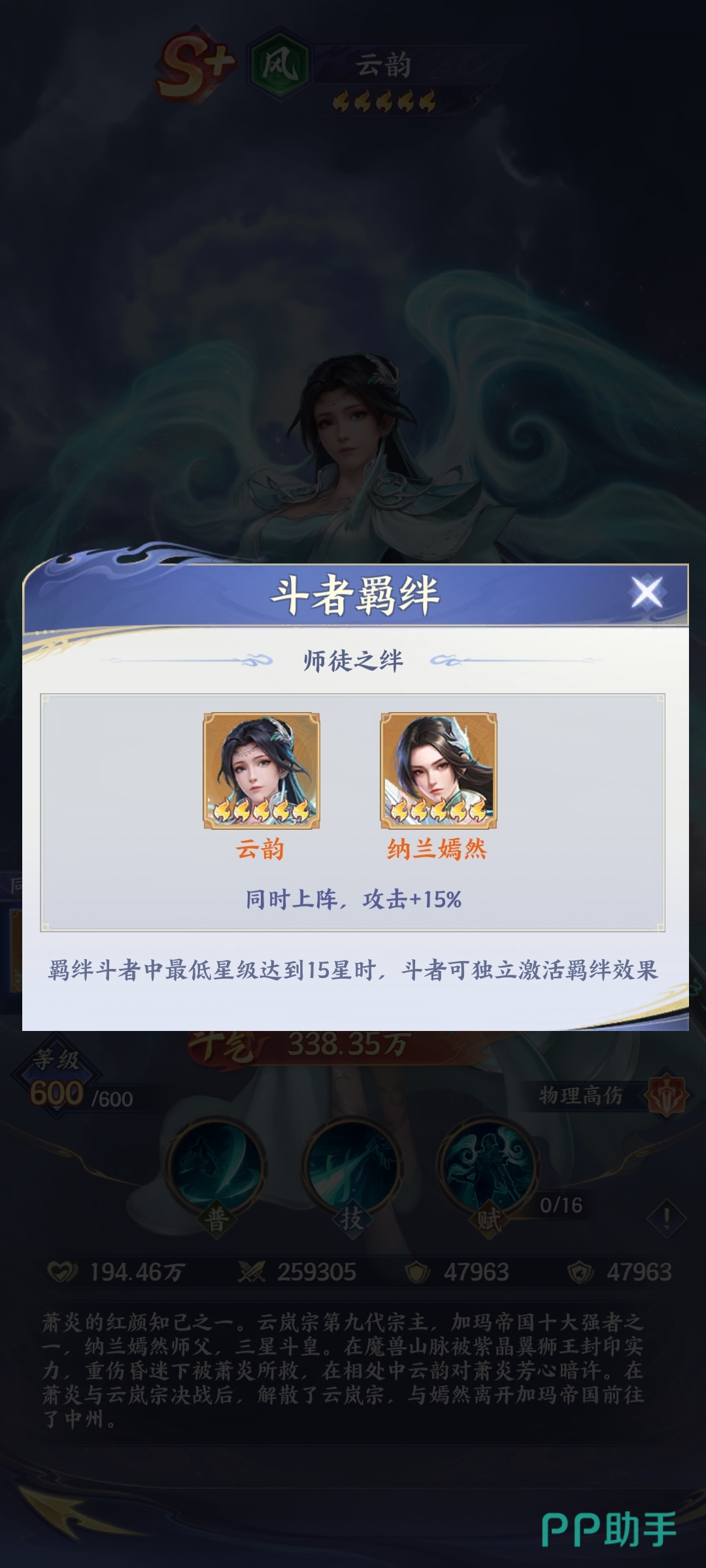 此外,云韵与纳兰嫣然存在专属师徒羁绊。双方同时上阵时,云韵将获得额外攻击力加成与暴击率提升,纳兰嫣然则可为其提供怒气回复与免控效果。该组合不仅强化了云韵的爆发节奏,也提升了整体容错率,建议在高难度副本与竞技场中优先配置。
