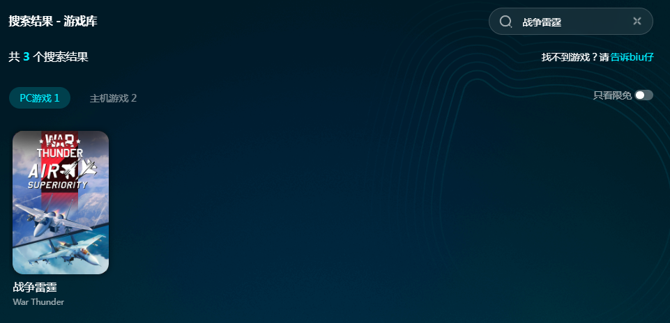 biubiu是非常专业的游戏加速器,可以加速上万款游戏,范围包括国内游戏跟海外游戏。软件收录战争雷霆三款加速资源,其中2款主机游戏是限免加速的。注册成为新用户就能获得3小时免费加速,对新用户限免意犹未尽的小伙伴只要输入【biubiu不卡顿】,也能得到3天免费加速。