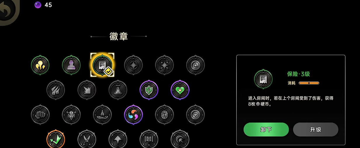 关卡途中会随机进入商店场景,提供徽章类消耗型道具。此类物品具备一次性强化效果,如临时提升移动速度、增加子弹穿透层数或延长格挡无敌帧等,对中期资源规划与Boss战准备具有显著价值,建议优先购置。