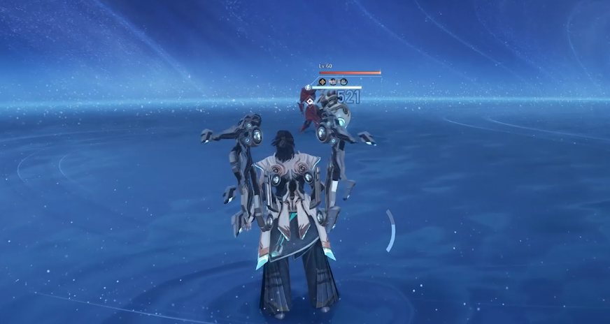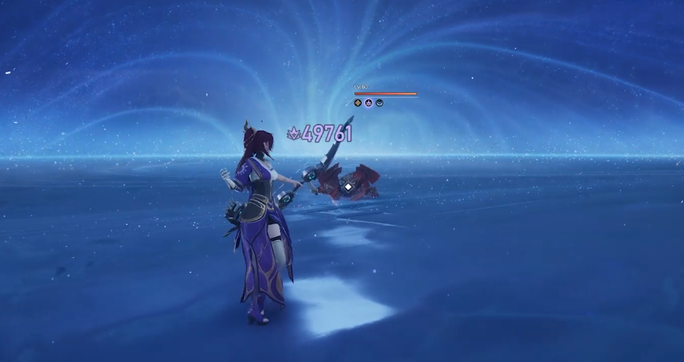 伽罗具备短弓/长弓双形态切换机制。基础普攻为连续射击;触发完美闪避或释放二技能后,下一次普攻将被强化为“渡灵箭”,并自动切换至长弓状态。长弓状态下,消耗渡灵箭可发动高伤害射击,且连射过程中攻速逐步提升;暴击时额外生成“追魔箭”。一技能“静默之箭”发射穿透箭矢,造成伤害并附带击退与击飞效果,释放后获得2支渡灵箭;三技能“纯净之域”展开圆形领域,对范围内敌人造成击飞,并提升自身暴击率;终极技“神箭”召唤巨型光箭,实现高额范围伤害。