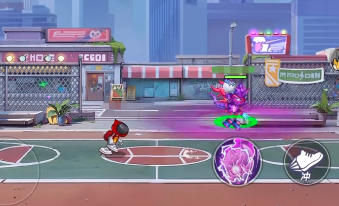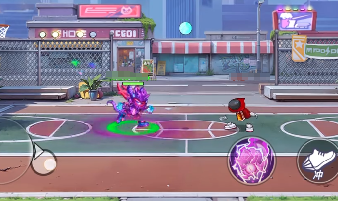 游戏提供单人闯关、1v1竞技、2v2组队对抗三种主流模式。新手可通过引导任务快速掌握双摇杆操作逻辑:左摇杆控制移动与转向,右摇杆辅助闪避与技能方向锁定;基础按键涵盖跳跃、普通攻击、特殊技释放及专属盖帽指令。当对手持球切入时,需预判其起跳时机,精准触发盖帽动作以打断投篮节奏;若自身持球,则可结合冲刺加速与假动作晃开防守,寻找最佳出手窗口。