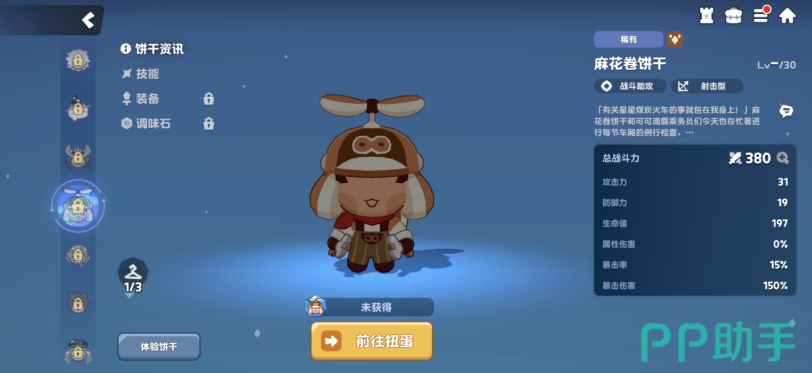 在《饼干人联盟》的初期养成阶段,麻花卷饼干凭借其出色的技能机制与实用定位,成为许多玩家优先培养的核心辅助输出角色。尽管该角色仅拥有普通稀有度,但其在前期关卡中的出场率极高,是新手过渡期不可或缺的战力支撑点。