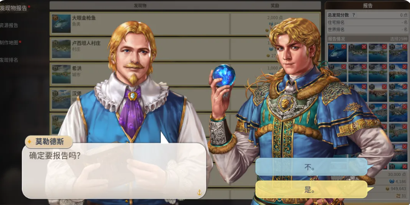 探索时限内,优先达成清单所列核心目标为最优策略。系统同步提供“发现物清单”,实时更新本次探索可获取的所有物品条目,包括地理图鉴、生物样本及文物碎片等。这些物品提交至收藏家后,可兑换金币、图纸或特殊技能书等高价值资源。此外,探索模式共设三类路径:常规探险、陆地实习与特别探险。三者对队伍配置要求逐级提升——常规探险仅需基础生存能力;陆地实习需满足环境适应与侦查技能阈值;特别探险则强制要求多项专业属性达标,并配备至少两名高级专精船员。建议中后期资源充足时优先选择特别探险,以获取更高品质回报。