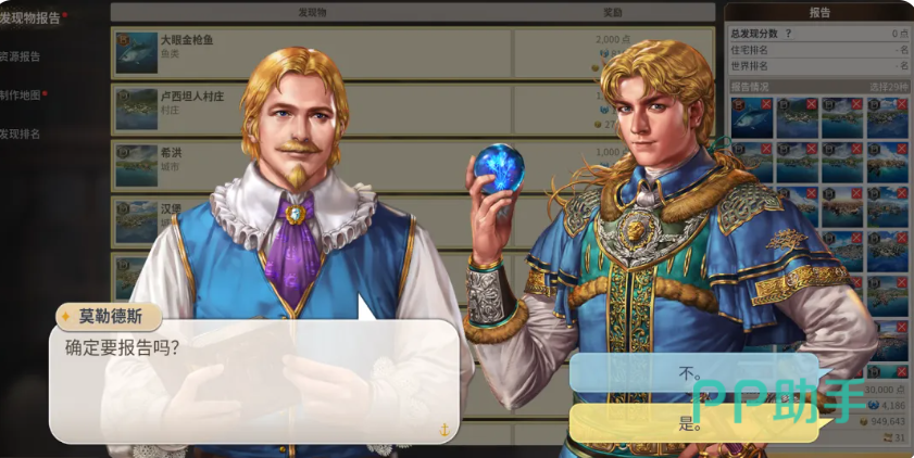 海岛地图包含可交互村庄,支持物资补给与本地特产交易,是提升资源储备的重要渠道。在该类区域执行探索任务时,船只仅能停泊于海岸线指定锚点,不可驶入陆地范围。进入探索界面后,需重点关注三项核心参数:地区特性、探索时限与能力门槛。其中,“最低探险天数”为硬性倒计时限制,玩家须在限定周期内完成全部目标;同时,不同岛屿产出的特色奖励(如稀有动植物标本、古籍残页等)与其生态构成及历史背景强关联,需匹配对应的专业技能等级方可采集。