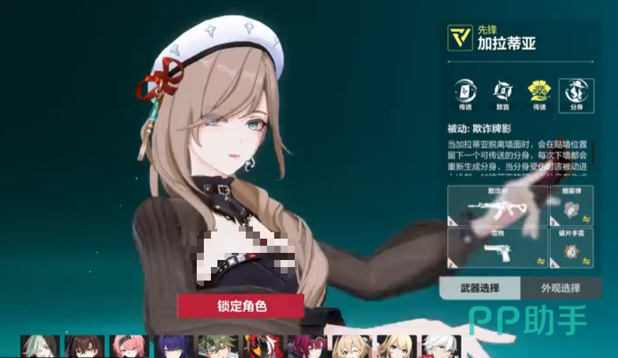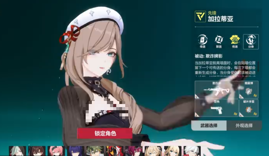 结合觉醒技所带来的隐身加速效果,加拉蒂亚在战斗中展现出极高的战术灵活性。防守阶段可通过投掷分身延伸枪线,遭遇威胁时则能迅速传送到任意分身位置并隐身撤离,极大增强了战场生存与机动能力。
