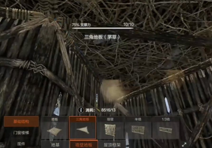 当一切都准备就绪之后,玩家就开始建造,在建造时玩家先铺设地基。游戏初期,玩家使用木材搭建框架跟围墙,这样就能够拥有对应的领地。之后再安装楼梯或者是爬坡的形式,建议玩家要合理的利用空间。
