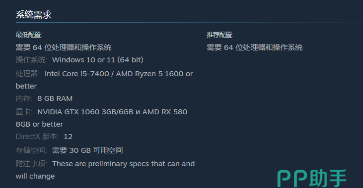 根据官方公布的需求,i5处理器+8GB内存+1060显卡,可以看出它的基础配置都是目前比较主流的中低端电脑搭配,因此《风暴崛起》这款游戏的配置要求是不高的,只需注意预留30G以上的存储空间即可。