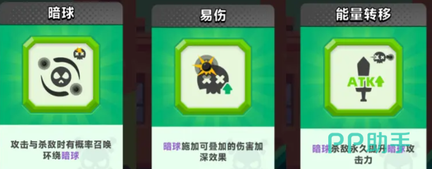 暗系构建以持续输出与增益叠加为核心。起始点选暗球,可在攻击或击杀时概率生成环绕自身的暗球单位;第二步搭配易伤,使暗球命中目标后附加可叠加的伤害加深状态;第三步推荐能量转移,当暗球成功击杀敌人后,永久提升其攻击力;第四步选择暗能增幅,每场上存在一个暗球即可提升角色攻击力;第五步选取黑暗汲取,实现击杀回血,增强续航能力;最后一步选择恶魔祭祀,进一步大幅提升整体攻击强度。