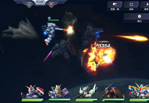 在实机战斗画面中,玩家需精准把握技能释放时机,当敌方机体聚集时,像正义高达的同时攻击技能,可瞬间对所有敌人展开攻击,有极高概率使敌人陷入持续4秒的燃烧状态,此时释放能最大化技能效果,对敌方群体造成可观伤害,在面对BOSS战时一些机体的关键技能也很强大,权天使高达的强力攻击技能,要在BOSS防御薄弱或出现攻击硬直时释放,以造成更高伤害。