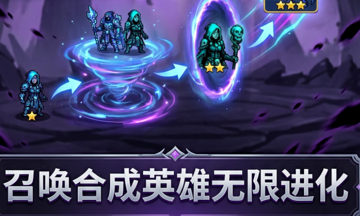 融合机制贯穿战斗与养成双维度:同等级英雄或装备组合后,可激活额外属性加成与协同特效,例如暴击率提升、技能冷却缩减或伤害类型转化等。该设计打破传统线性成长模型,在策略纵深之外叠加成长惊喜感,使每一轮合成决策都影响后续战术选择空间,从而强化游戏的耐玩性与目标驱动力。