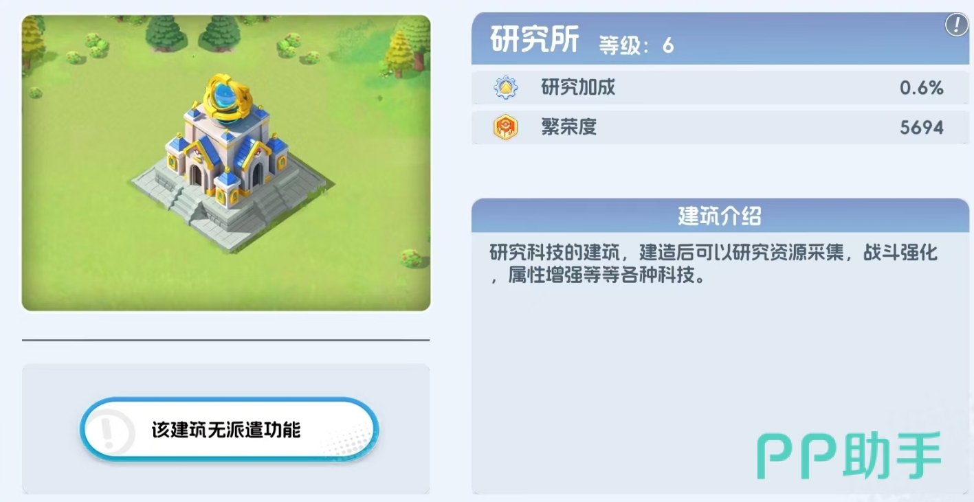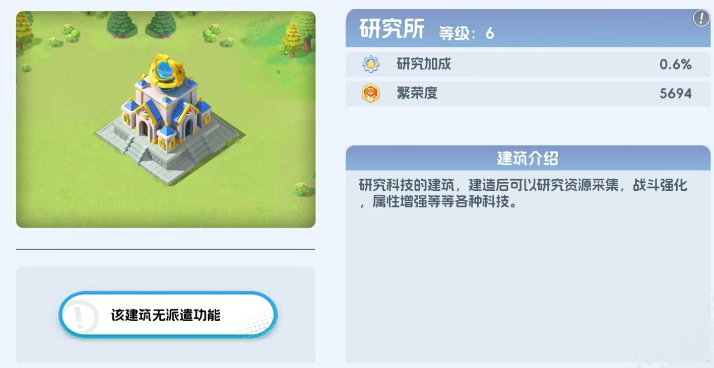 在《宠物集结》中,研究所并非普通建筑,而是驱动整体成长节奏的战略中枢。玩家需先在基地内完成建造操作,方可激活该系统。作为可逐级升阶的专属设施,研究所内设三大科研方向——后勤、战斗与辅助,每条线均采用线性解锁机制:前置项目未完成前,后续研究无法开启。所有科研均需消耗金币、石料、木材等基础资源,研究成功后不仅即时生效对应加成,还将同步提升基地繁荣度数值。