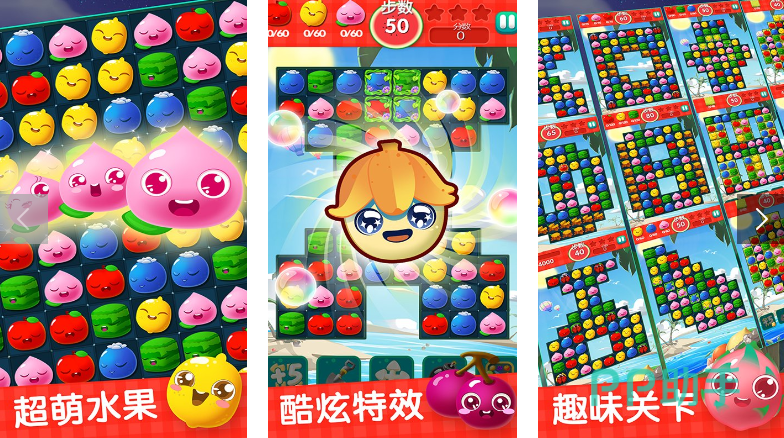 这款游戏以它绚烂多彩的视觉效果引人入胜,各种色彩鲜艳的水果在缤纷的背景下活泼地排列开来。玩家的目标是消除屏幕上相同类型的水果,直至整个游戏空间变得空空如也。初看之下,这似乎并不太难,但随着游戏慢慢深入,难度会逐渐增加,为玩家带来一系列有趣的挑战。有些关卡会设定步数上限,要求玩家在规定步数内清除指定种类的水果。