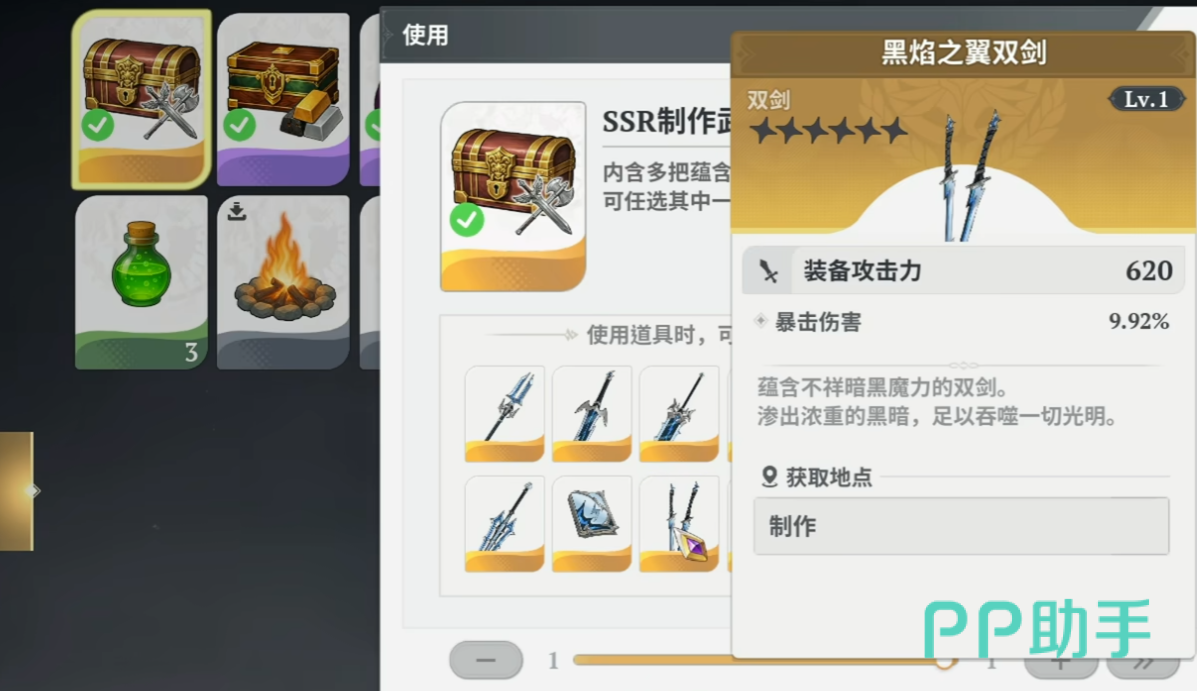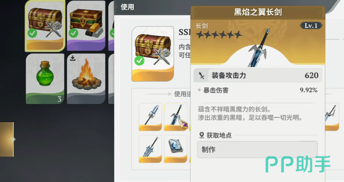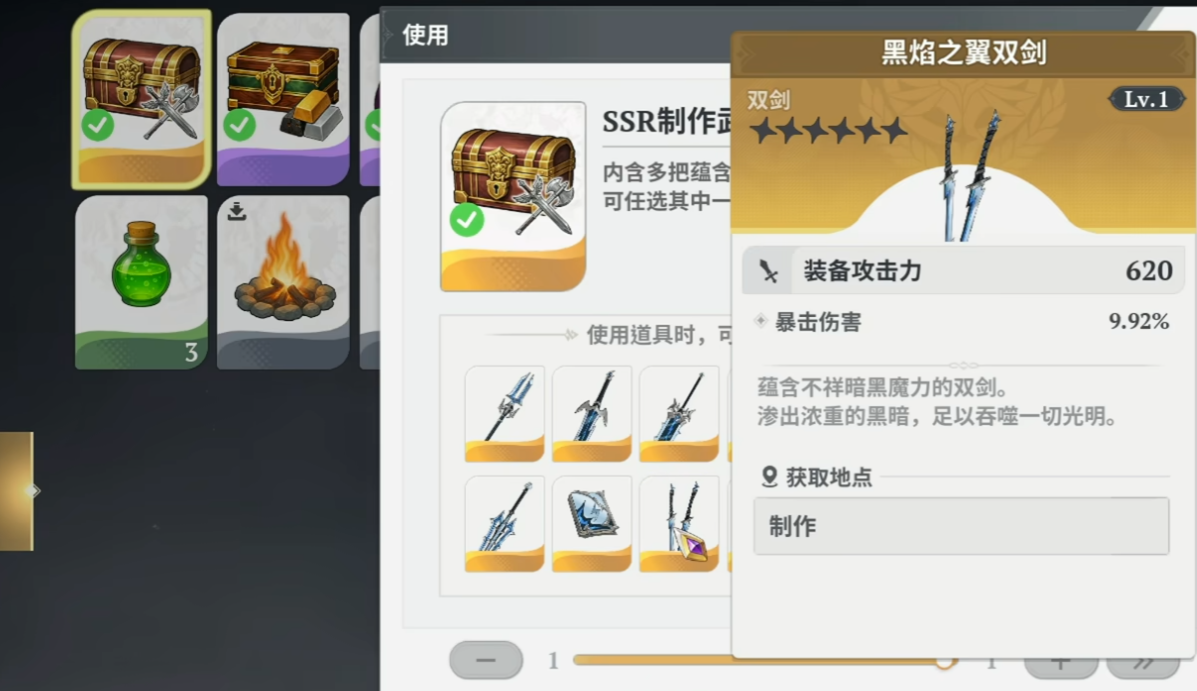 近战类武器中,黑焰之翼斧具备明确的爆发增益特性:激活后20秒内,提升12%至24%攻击力及8%至20%暴击率。该效果对梅利奥达斯、斯莱德、艾斯卡诺等依赖短时间高输出循环的角色具有显著加成,尤其适用于需要快速压低Boss血线的攻坚场景。