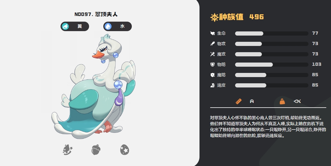 翠顶夫人是洛克王国世界二测的时候上线的新传说精灵,想要获得翠顶夫人就需要先捕捉乖乖鹄,然后通过进化和升星获得蓝珠天鹅,然后在抓捕几只乖乖鹄放生获得升阶材料就可以再次升阶,在蓝珠天鹅三十二级后可以升阶为翠顶夫人,也就是第三阶的最终形态,而想要捕捉乖乖鹄,玩家就需要前往风眠省的隐秘滩涂附近,在河里就会刷新出乖乖鹄了。