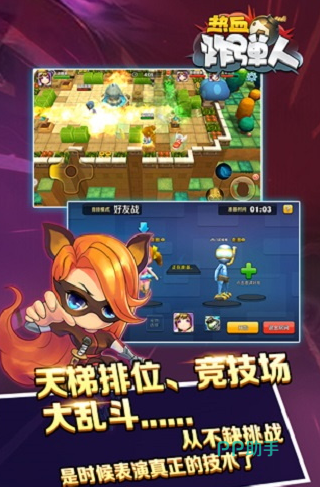 这是一款融合经典与创新玩法的休闲竞技手游,以Q萌画风与策略爆破为核心,打造轻松欢乐的对战体验。游戏延续炸弹人放置炸弹、引爆障碍的核心机制,同时加入英雄养成与技能搭配系统,玩家可操控不同定位的英雄参与1v1、3v3或组队冒险。每个英雄拥有专属技能,如防御型英雄的护盾、输出型英雄的远程爆破,配合炸弹道具的爆炸范围、移动速度加成等增益效果,形成千变万化的战术组合。
