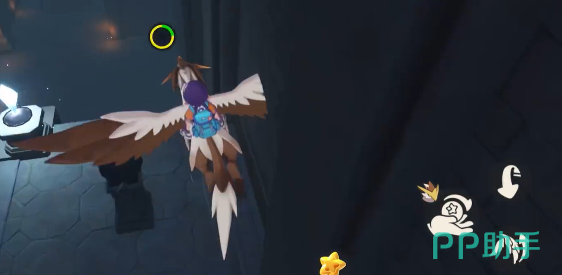 副本初始阶段需点亮全部火把以激活路径。火把不仅提供视野照明,更是开启传送门的关键触发点。推荐携带火系宠物入场,可实现一键引燃,避免因反复切换道具或手动操作导致时间损耗。传送门开启后,沿地面箭头标识行进,将抵达分岔区域:左右两侧各设1支待点燃火把;完成点燃后,场景风力自动增强,角色可借助气流跃升至高台,体验洛克王国标志性的动态飞行机制。