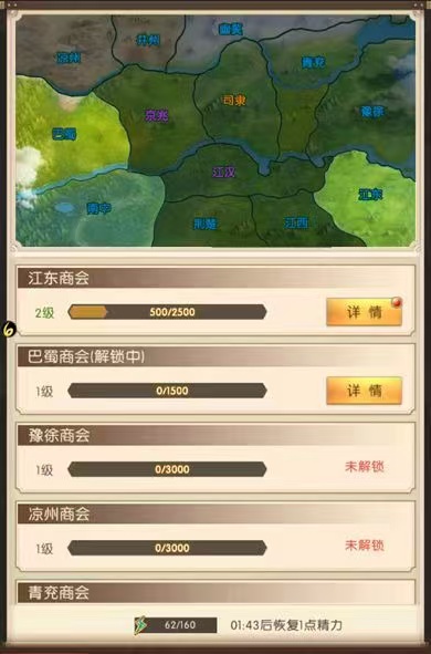 商会系统得等你打下26座城池后才会解锁,相当于游戏中期的一个里程碑。每个商会对应地图上的一个板块,比如幽州商会就需要先把幽州区域的所有城池都占领,这一步自己慢慢推图,解锁商会后,相当于打开了一个资源副本,每天上线必刷,收益比单打独斗高多了。