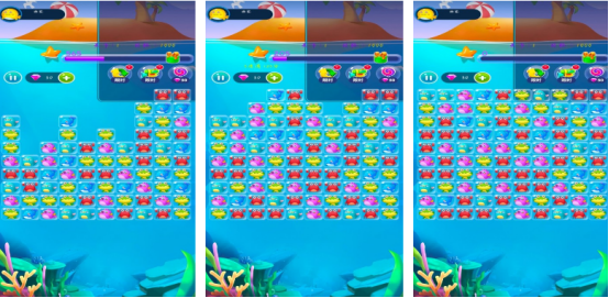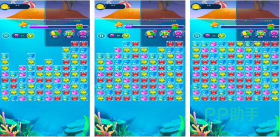 色彩缤纷的画面,还以特别唯美的海底世界为蓝本,游戏给玩家带来了赏心悦目的体验感,在这里会呈现出色彩缤纷的小动物,玩家可通过利用手指点击屏幕的方式将三个或多个相同的小动物快速消除,就能获得相应的分数,在每个关卡中都会有具体的道具,比如有刷新以及增加时长等等,可帮助玩家顺利闯关。