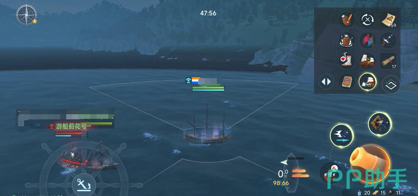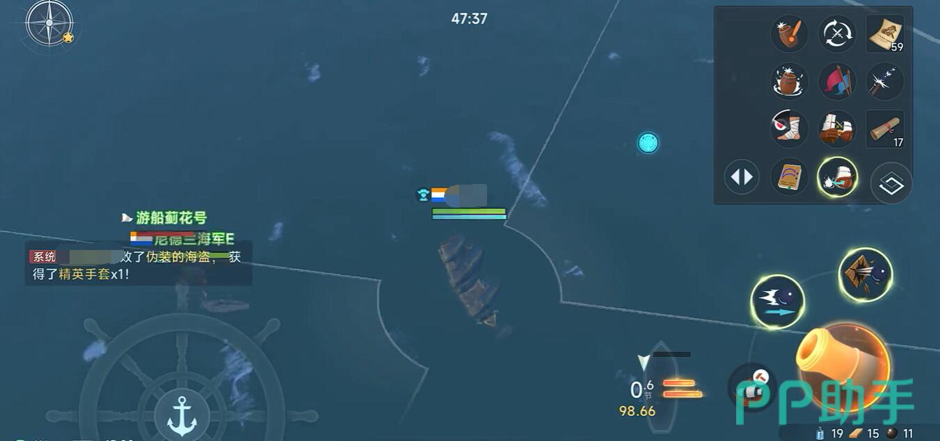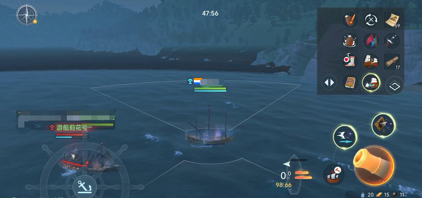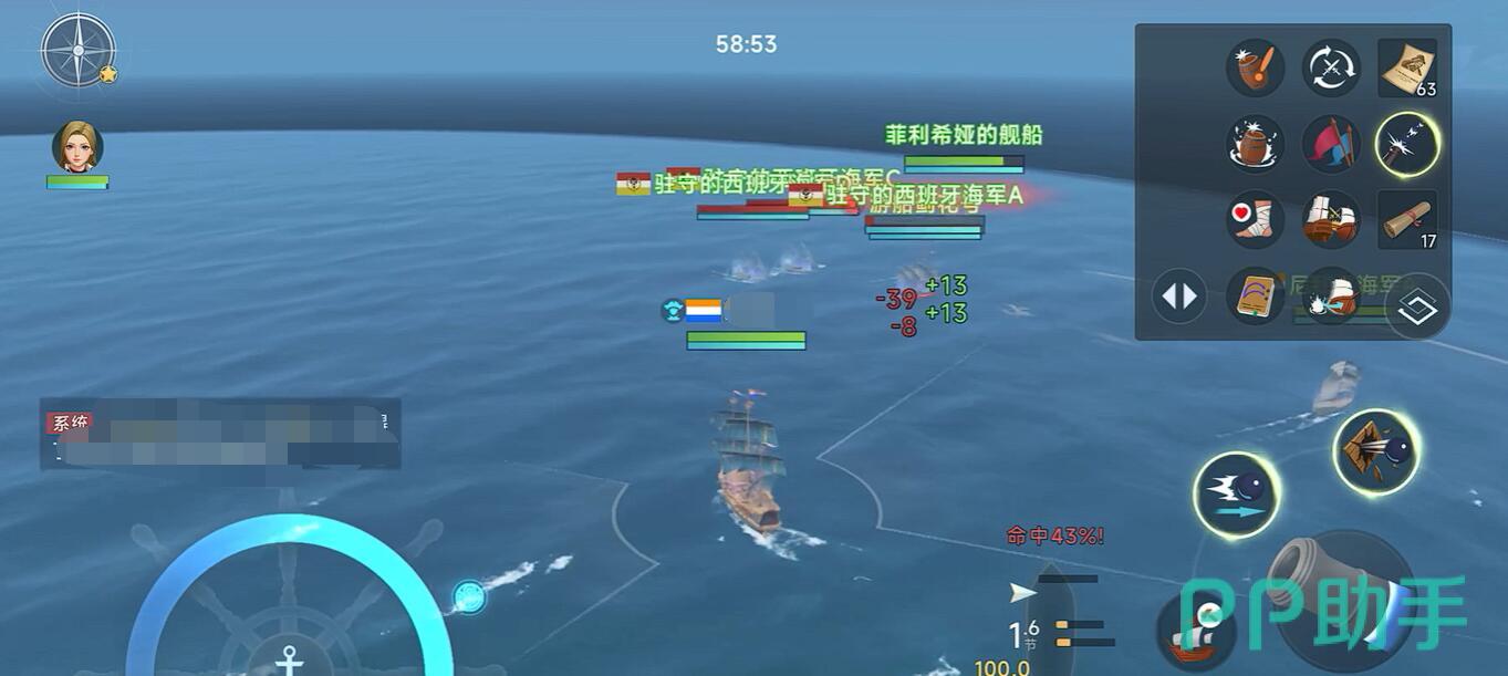 蓟花号战局的关键在于瓦解其护卫舰群。战斗开始时,玩家会注意到蓟花号周围有5-6艘西班牙战舰,它们会优先攻击靠近的友方NPC船只。此时切忌贸然突进,应保持中距离(约半个屏幕范围)游走,利用远射程火炮(如长管加农炮)锁定最外围的一艘敌舰攻击。被命中的敌舰会脱离编队追击玩家,此时迅速拉开距离,将其引至战场边缘1v1解决。