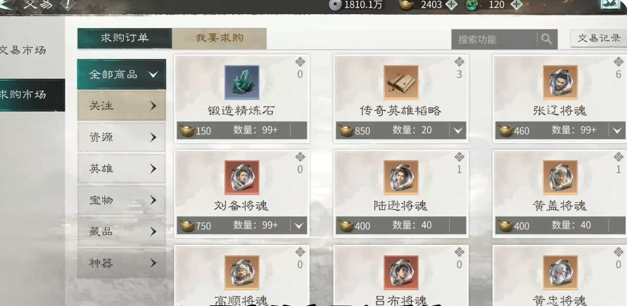 对于大多数玩家来说,交易行最直接的价值在于“整理背包空间”。在日常推图、完成任务或参与活动过程中,会积累大量资源,例如武将碎片、进阶材料、卡包等。其中不少资源可能暂时用不上,甚至重复获取,既占用背包容量,又难以处理;