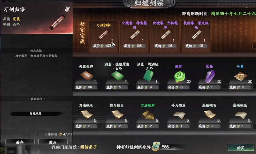 想要获得这个武学有两种不同的方法,其中一种就是加入到剑宗门派中,玩家在进入门派之后需要不断去完成特定的任务,这样在游戏里会不断得到等级的提升,可以从最底层的一个普通弟子,逐渐晋升成整个门派中比较有领导力的角色,在这个过程中通过完成各种任务,玩家还可以不断的积累声望,借助这些声望,玩家可以从一个普通的弟子晋升成声望弟子,等达到了这个等级之后,就可以利用自己在门派里的贡献度去兑换,一般只要按照任务完成门派里的各项挑战,声望值和贡献值都是同步提升的。