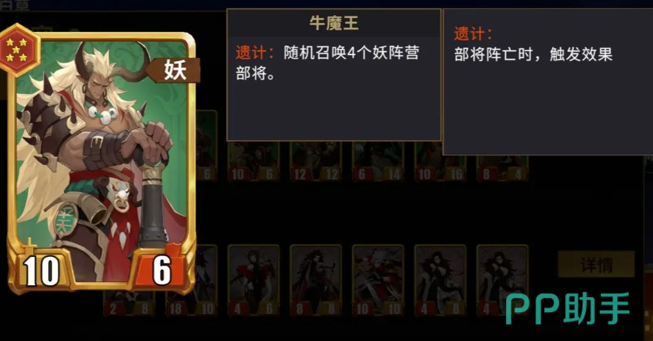 核心构成包括石矶、牛魔王和铁扇公主,其余角色可根据局势自由调整。该阵容利用牛魔王召唤妖族单位的能力,结合铁扇公主在友方妖族死亡时为全队加攻的效果,形成持续增益循环。石矶提供的不屈状态可保障牛魔王存活,使其不断释放召唤技能,维持场上兵力数量,从而快速堆叠整体战斗力,适用于中期发力争夺节奏主导权。