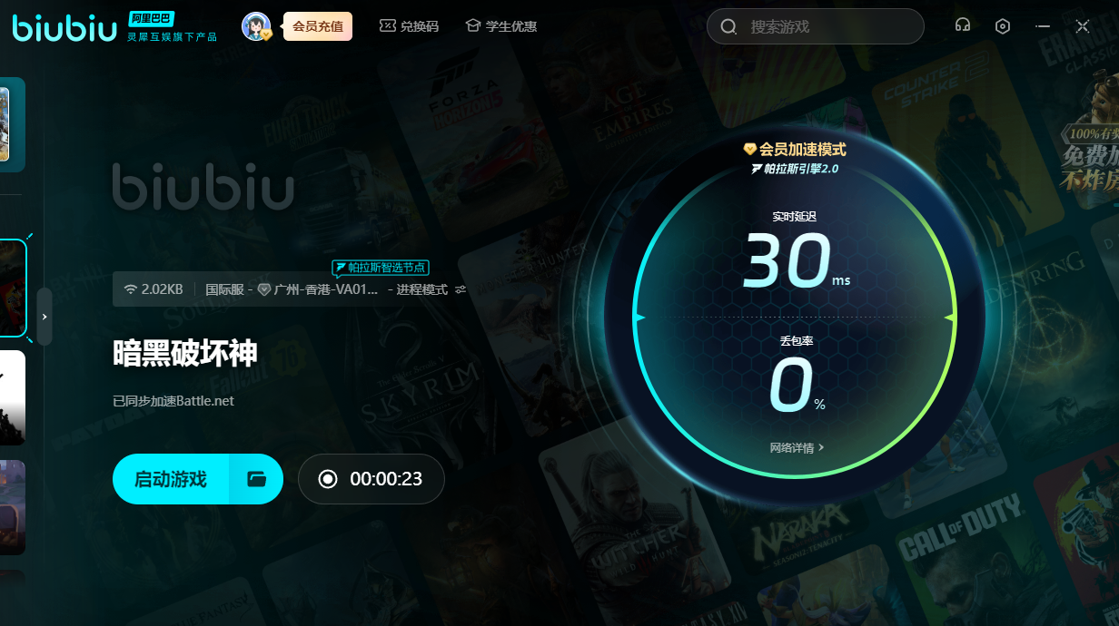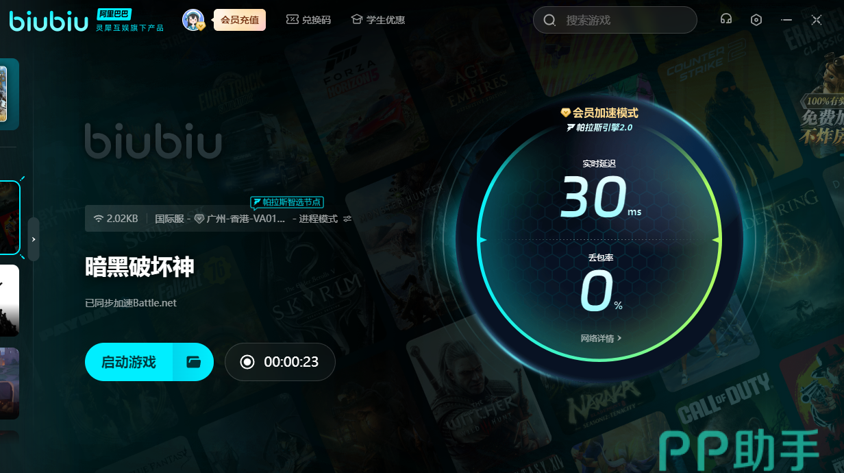 刚玩暗黑破坏神时太卡的话,相信一出新手村后就会被路过的野怪杀死。必须用上biubiu,如此才能在这黑暗丛生的世界中侥幸活下来,继续发育成为新世界的神!新用户的话可获得3小时的免费加速,另外新老用户输入【biubiu不卡顿】,就能额外领取三天免费加速。如果大家选择和队友一起下副本刷怪的话,延迟过高就无法配合好。用上加速器后,就可做好自己的本分,让每个人都分工明确,即可越阶解决boss!