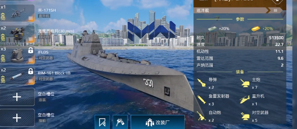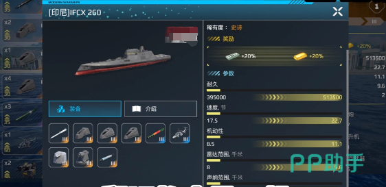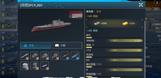 印尼巡洋舰会拥有不错的速度,血量也会处于中游的水平。会直接搭载七门锁定电磁主炮,搭配导弹还有激光,可以锁定防空武器。在主炮中,AGS - 155Mod2 单轮伤害 68640,射程也可以直接达到12.13km。输出是比较直接的,而且相当的有暴力。