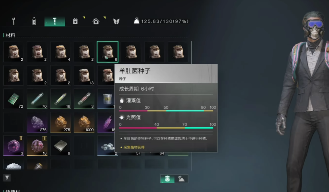 羊肚菌种子在游戏当中总共有两种获取方式,第一种获取方式是,玩家迁往到黑金地带的太阳农场之中,在农场右侧的建筑隔间内,通过搜寻的方式来获取。