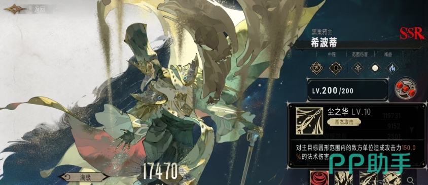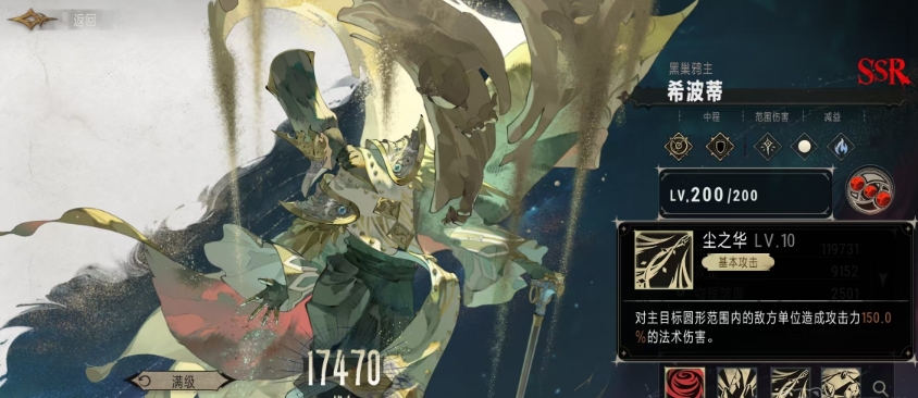 作为一个比较强势的范围伤害型角色,它的存在给玩家带来了丰富的战术选择,希波蒂隶属于教会阵营,属于轻型角色,它的攻击范围为中程,这一设定使得它在战场上有着灵活的发挥空间,能够对一定范围内的敌人造成可观的伤害,自身的月相为满月,先来看它的普通攻击尘之华,这是一个范围类型的基本攻击,当希波蒂发动此攻击时,能够对主目标圆型范围内的敌方单位造成150%攻击力的法术伤害,相较于单体攻击,这种范围攻击在面对多个敌人时,输出总量会更高一些,能够在瞬间对一片区域内的敌人造成伤害,有效地打击敌方的有生力量。