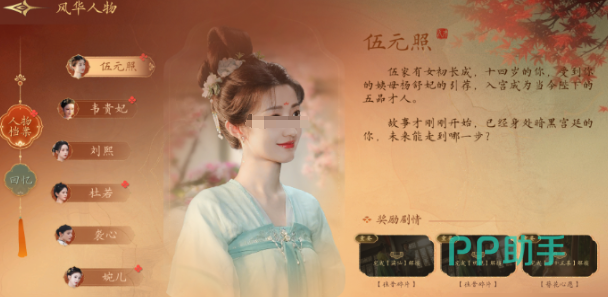 本作还设计了多个特色系统。“风华人物”模块中,每位角色都有详细的背景介绍及隐藏故事线。你可以为你喜爱的角色赠送鲜花以提升好感度。随着游戏深入,回忆系统将逐步开放,允许玩家回看之前错过的支线剧情。对于关键人物如韦贵妃、刘熙等,其过往经历往往与主线息息相关,理清人物关系网对理解整体剧情至关重要。