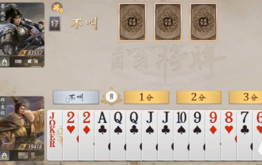 当威望累计至3点时,袁绍可发动“号令”:指定一名对手,强制其弃置手中点数最大的一对牌(对子);同时,袁绍拥有完全自主选择权——可选择直接获取该对子,也可仅执行弃牌效果而不拿牌。这一双向决策赋予极强的战术弹性:既可用于瓦解对手关键组合(如拆掉即将成型的三带二或顺子核心),也可保留自身手牌结构完整性,避免因接牌打乱原有出牌节奏。需注意,“号令”全程仅限使用两次,因此首次释放时机尤为关键——通常建议在首回合地主阶段优先启用,以提前暴露对手底牌构成,抢占信息优势。