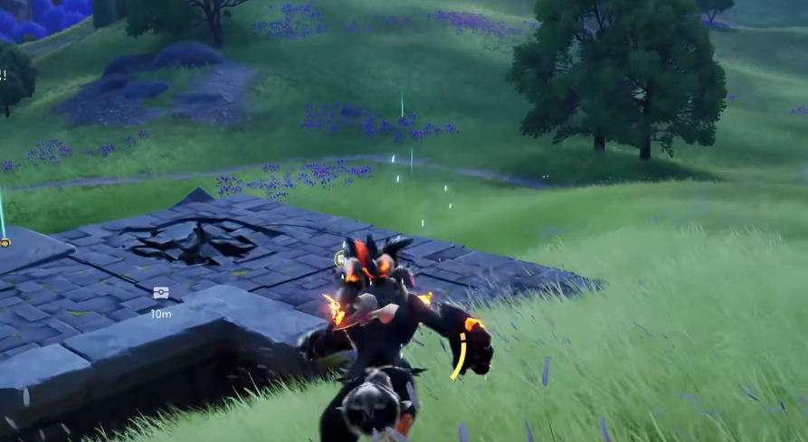 在空中飞行过程中,请注意观察地面地形变化。当发现由石块堆砌而成的古代遗迹结构时,即可准备降落。虹光星魔师通常刷新在遗迹周边,尤其喜欢出现在大型树木附近,例如粗大树干的根部或浓密树影覆盖的区域。若初次降落未见其踪迹,可围绕遗迹周围的植被带进行环绕式搜索,持续移动有助于提高遭遇概率。