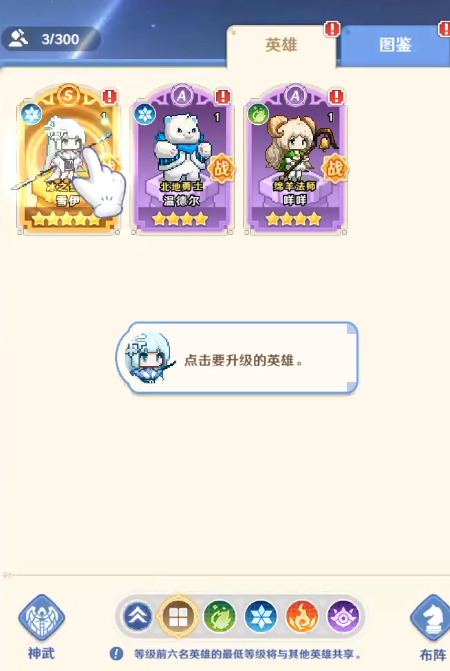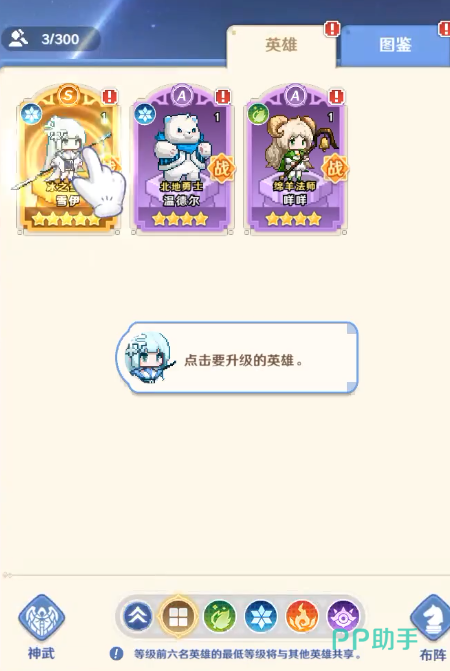 每一次对战玩家都需要选择多名角色,每一个角色都会有不同的特性,建议玩家在游戏里,都优先使用金币不去升级角色的强力技能,前期多去参与主线任务,等到后期,每天的体力都可以用来去挑战副本,这样通过副本就能获得更多的经验,也有助于玩家能力的提升。