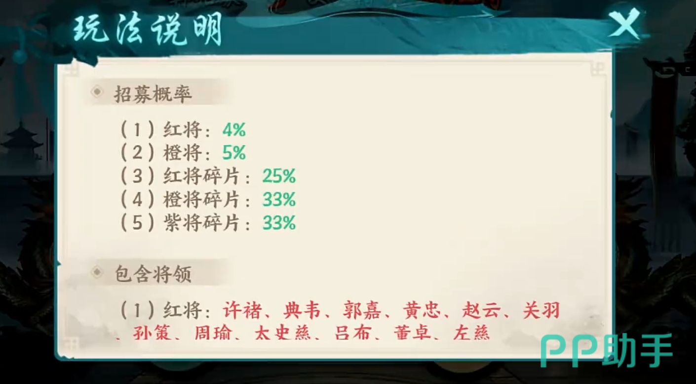 所获得的点将令可用于点将台抽卡,每次抽取消耗一枚,支持单抽与十连抽两种模式。奖池涵盖红将、橙将等高品质武将,也可能掉落武将碎片。值得一提的是,游戏设有三十抽保底机制,确保玩家在一定范围内必定获得红将,大幅降低高阶武将的获取门槛。对于零氪玩家来说,只要坚持收集点将令,组建全红将阵容并非遥不可及。