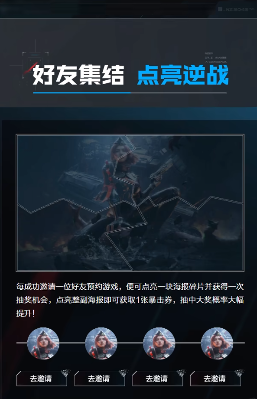 以上即为《逆战:未来》预约奖励的完整说明。除基础奖励外,邀请好友一同预约还可额外获得角色皮肤及高级补给礼包。建议召集喜爱枪战题材的玩家朋友共同参与预约,待正式上线后即可组建队伍,开启紧张刺激的团队对战体验。