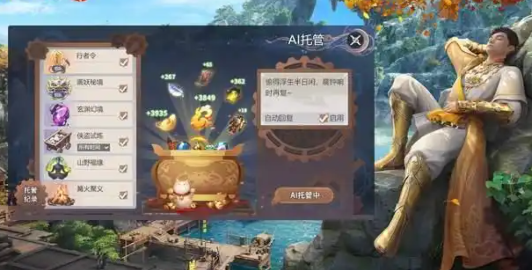 Ai托管任务这个是整个游戏的一大特色,主要帮助离线的玩家玩游戏,参加各种活动,也能够完成日常任务,让玩家开开心心的领取奖励。