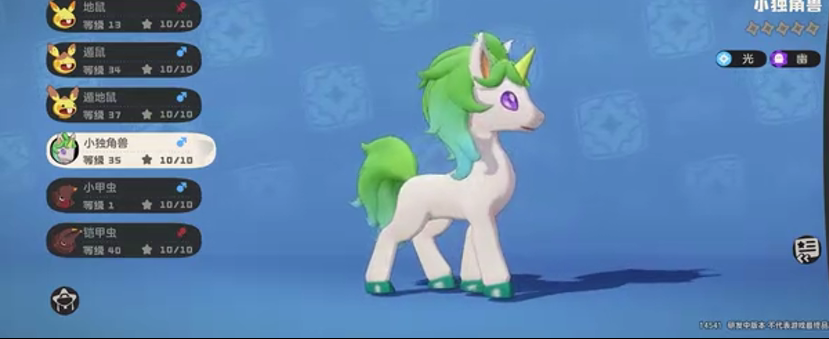最后给大家介绍的一个光系精灵就是小独角兽,他的外形是非常可爱的,并且可以跟大家来不断的辛勤培养,后期成长为白金独角兽,但是对于大家的材料需求是非常大的,同时还需要满足自己的等级达到36级,它的属性值也是非常高的,可以利用光属性的技能来进行治疗以及净化,特别适合喜欢具有挑战性的玩家来选择。